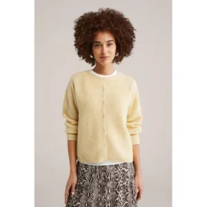 WE Fashion vest fijn gebreid lichtgeel