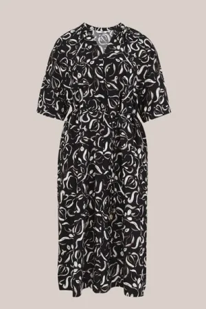 WE Fashion – Dames midi jurk met structuur – Curve – Regular fit – Zwart – Viscose – Plus Size