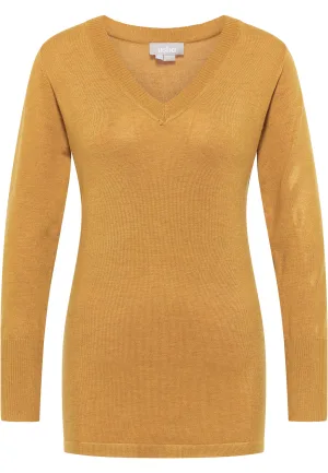 WE Fashion – Dames gebreid vest met structuur – Regular fit – Mosterdgeel – Biologisch katoen –