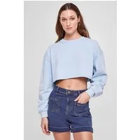 Urban Classics Ladies Cropped Flower Embroidery Terry Crewneck Balticblue