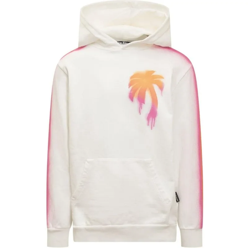 Palm Angels Sprayed Palm Tree Design White Hoodie
