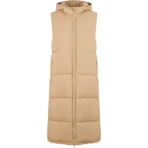 Lange gewatteerde mouwloze damesjas met capuchon Urban Classics