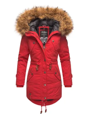 Marikoo dames winterjas met afneembare imitatiebontkraag & taillekoord