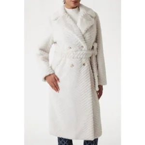GUESS Claire Long Coat Faux Fur Pale Pearl Multi