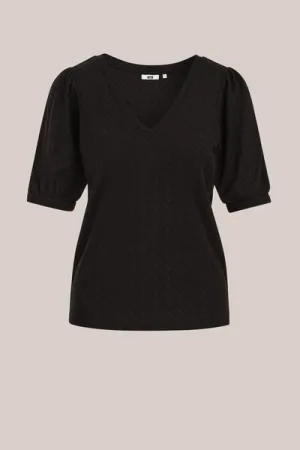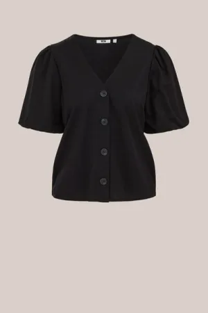 WE Fashion – Dames jersey top met ballonmouwen – Regular fit – Zwart – Viscose –