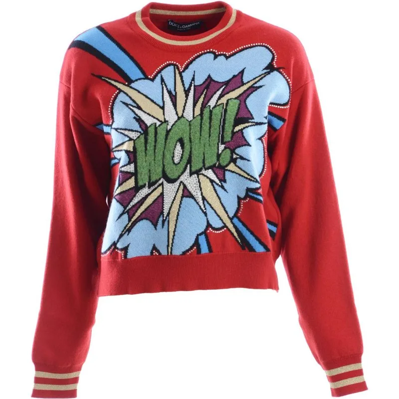 Dolce & Gabbana Rode gebreide kasjmier trui met cartoon