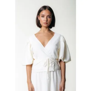 Colourful Rebel Miley Knitted Structure Wrap Top Off White