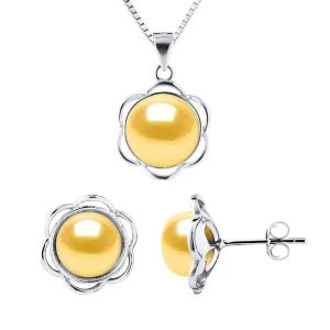 Versiering ketting en oorbellen PETAL Freshwater Pearl 8-9mm Golden 925
