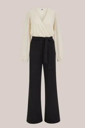 WE Fashion – Dames Jumpsuit met kant – Regular fit – Beige –