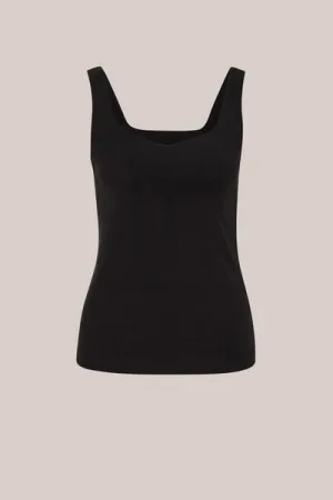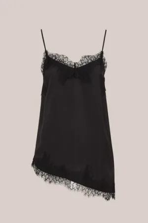 WE Fashion – Dames asymmetrisch singlet met kant – Regular fit – Zwart –