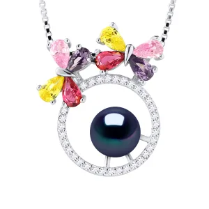 BUTTERFLY zoetwater parel Rond 8-9 mm Black 925