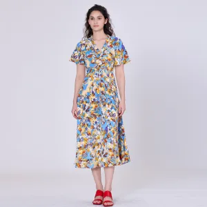 Chiffon -shirt met tulpenmouwen en abstracte print