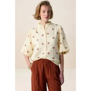 Smashed Lemon Tuniek top met blad print en strikdetail in oker geel |