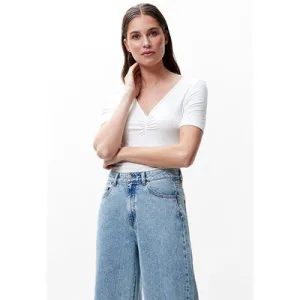 French Connection Aleda Crepe Light Lace V Bk Tp White