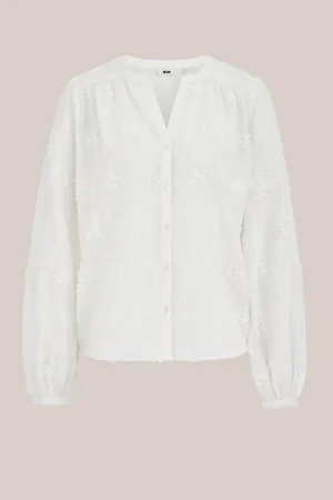 WE Fashion – Dames blouse met embroideries – Regular fit – Wit – Katoen –