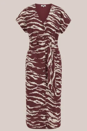 WE Fashion – Dames midi jersey jurk met print – Donkerrood – Viscose –