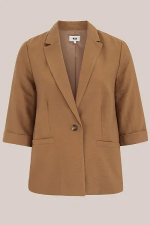 WE Fashion – Dames regular fit blazer met structuur – Curve – Regular fit – Lichtbruin – Viscose – Plus Size
