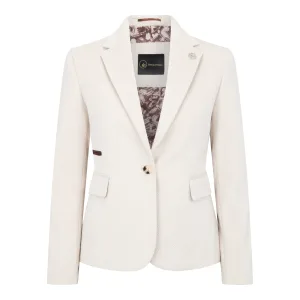 Crèmekleurige getailleerde damesblazer van wolmix tweed