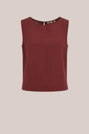 WE Fashion – Dames singlet van linnenmix – Regular fit – Bordeauxrood – Livaeco™ Viscose –