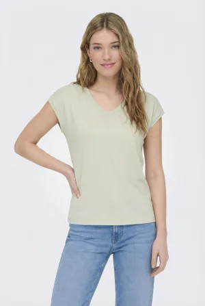 Only Onlsilvery S/s V Neck Lurex Top Jrs Noos T-shirts Green Lily