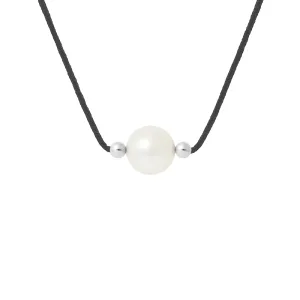 Zoetwaterparels Ketting Rond 9-10 mm White Nylon Black 925