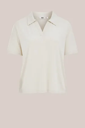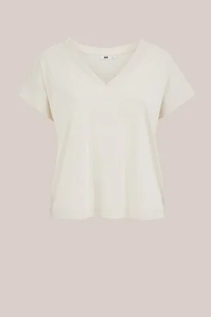 WE Fashion – Dames T-shirt met V-hals – Curve – Regular fit – Beige – Viscose – Plus Size