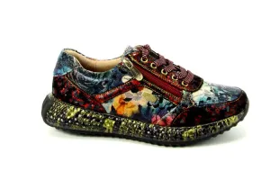 DIDI Blouse S/s Flirt Poppy Red With Lots Of Leaves Print