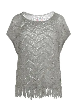 faina Gebreid vest goud / fuchsia / parelwit