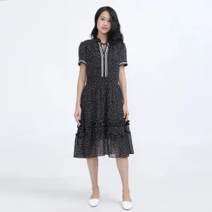 Polka -stippen passen en flare chiffon jurk