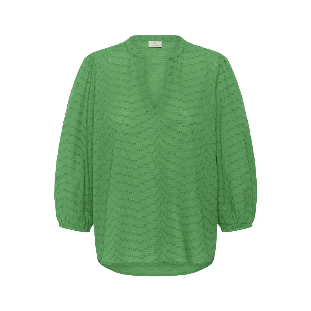 Smashed Lemon 25071 leaf print chiffon top met v-halsflared mouwen |