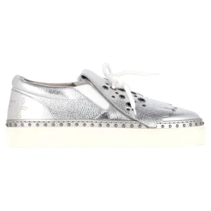 Burberry Kiltie Franje Detail Slip-On Sneakers Metallic Zilveren Leer