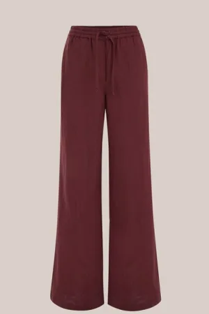WE Fashion – Dames wide leg broek van linnenmix – Loose fit – Bordeauxrood – Livaeco™ Viscose –