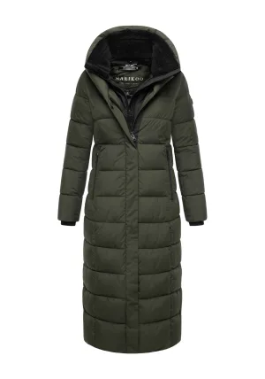 Marikoo dames gewatteerde mantel Pakoraa met afneembare teddy kraag