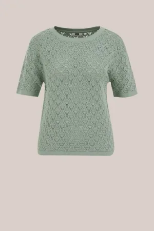 WE Fashion – Dames trui met open structuur – Regular fit – Groen – Biologisch katoen –