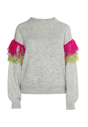 IZIA Trui grijs gemêleerd / lichtgroen / fuchsia