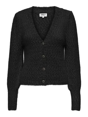 Only Onlrosette Ls Cardigan Cs Knt Vest Black Dtm Glitter/dtm Button W. Gold