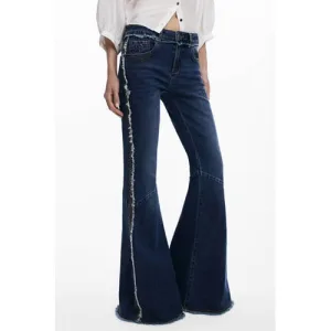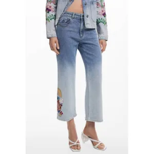 Desigual gebloemde bootcut jeans light blue denim met pailletten
