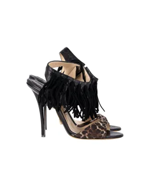 Jimmy Choo Leopardenprint Fringesandalen in Zwart Leer
