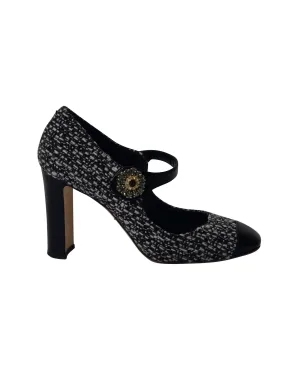 Dolce & Gabbana Tweed Mary Jane Hakken in Zwarte Katoen