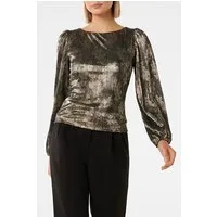 Forever New Gabriella Boat Neck Metallic Plisse Metallic Gold