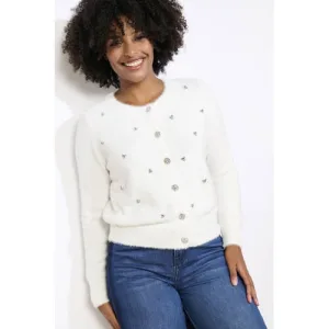MANGO Gebreid vest ‘COPENH’ karamel / wit