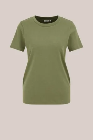 WE Fashion – Dames basic T-shirt – Regular fit – Olijfgroen – Biologisch katoen –