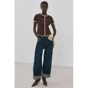 WE Fashion – Dames vest met structuur – Curve – Regular fit – Beige – Katoen – Plus Size