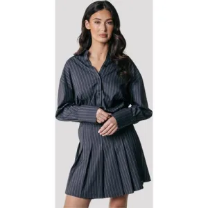 Colourful Rebel Shaline Pinstripe Pleated Skirt Dark Anthracite