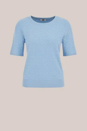 WE Fashion – Dames gebreide trui met structuur – Regular fit – Lichtblauw – Biologisch katoen –