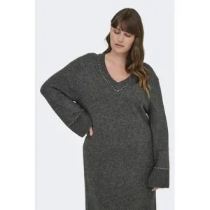 ONLY CARMAKOMA mini jurk gebreid grijs