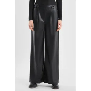 QS imitatieleren Wide leg regular waist broek zwart