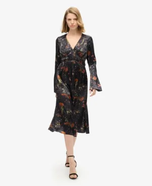 Superdry Vrouwen Jacquard Midi-jurk met Wijduitlopende Mouwen Zwart