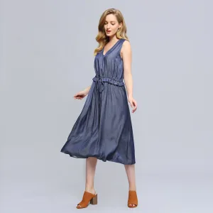 V-hals verstelbare taille midi-jurk