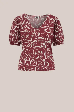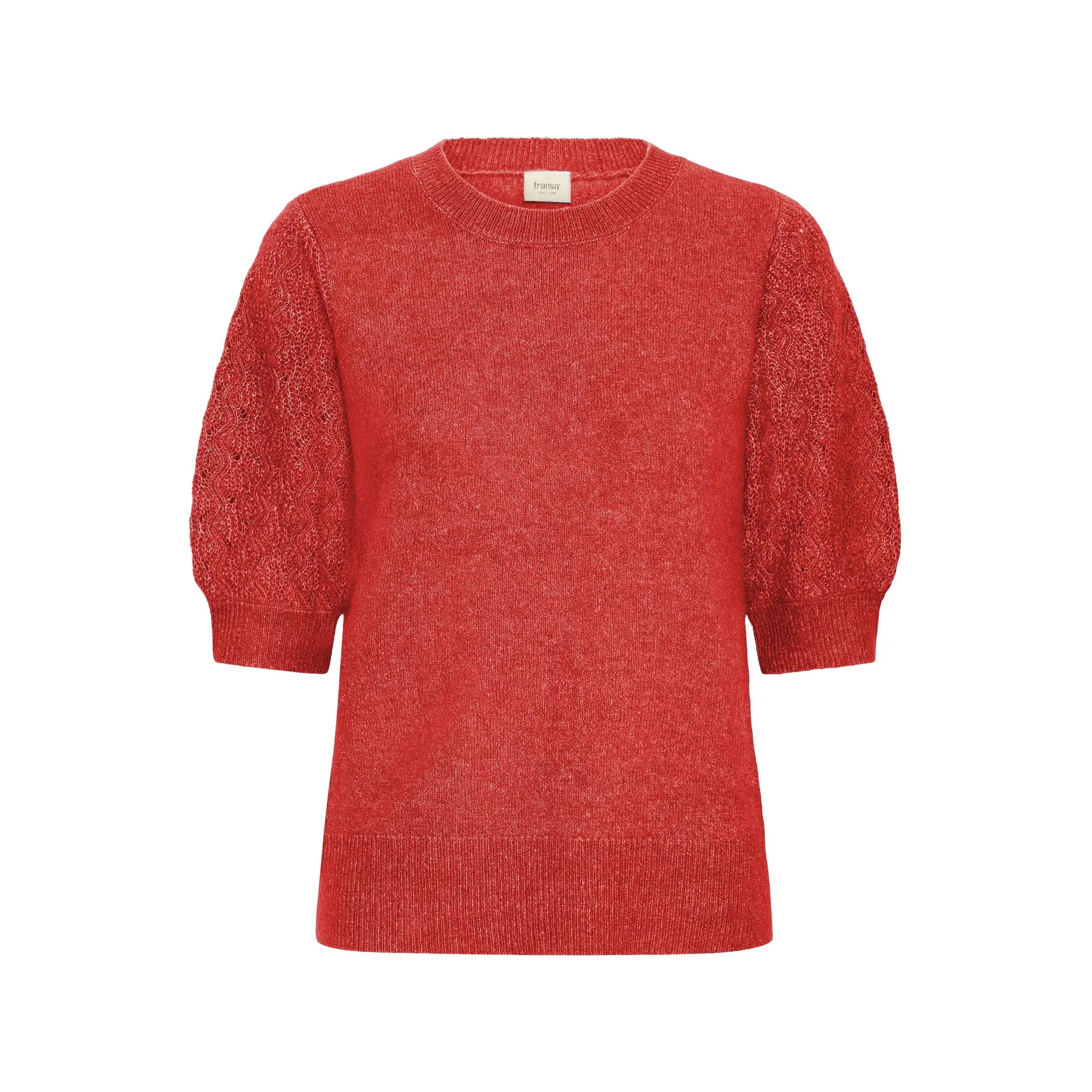Cecil Dames Gemêleerd geribd overhemd met trechtervormige hals in Rood